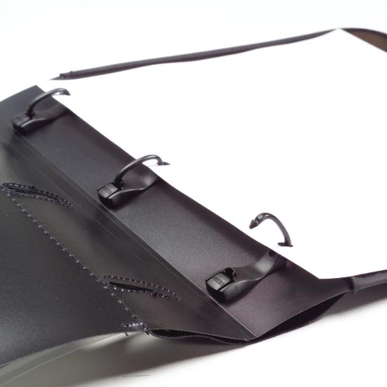Clear front cover folds back and keeps title sheet intact by securing it inside cover edge. Interior 3-ring design holds 3-hole punched report pages.